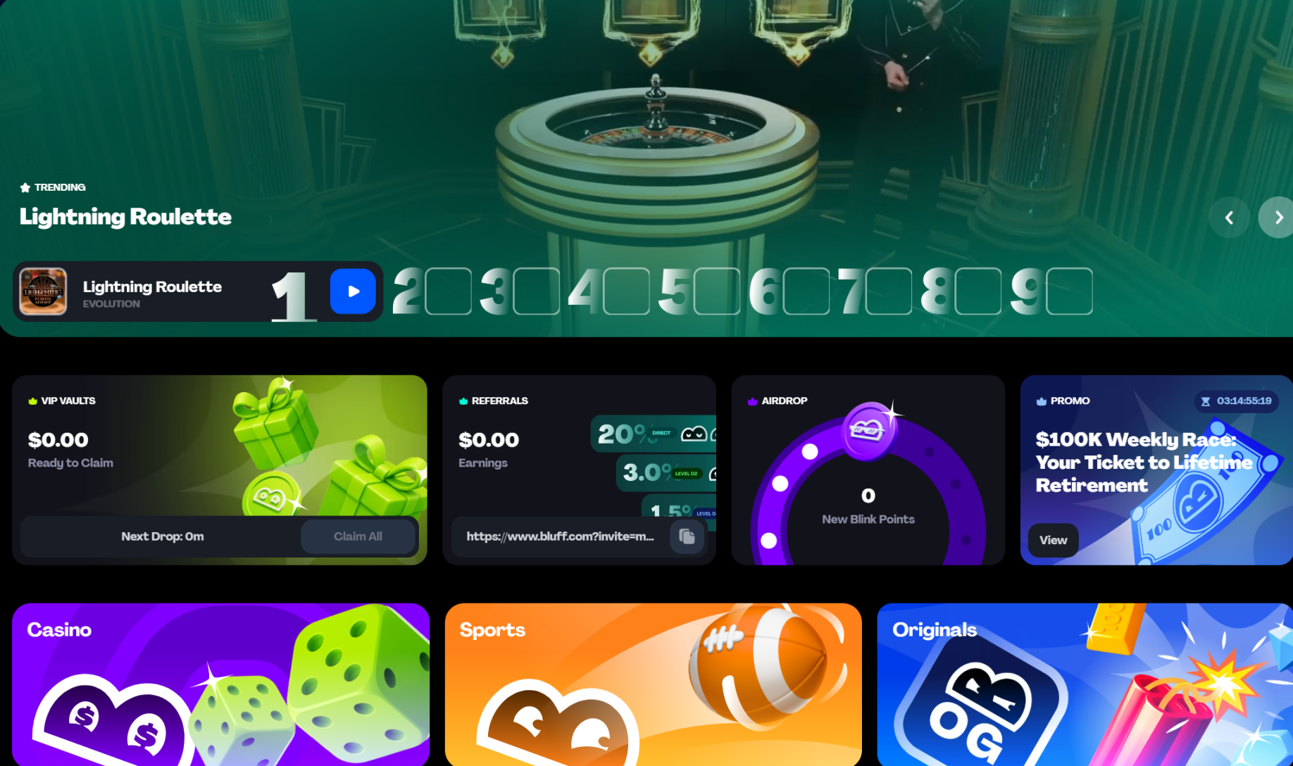 bluff 模糊了游戏、预测、投机和娱乐之间的界限。二元结果、定制市场、从头设计的 BLUFF 原创内容、根据玩家行为调整的个性化体验。