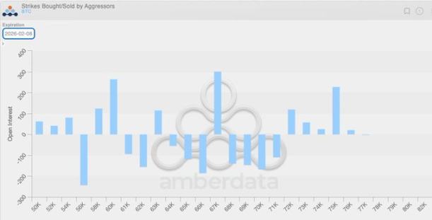 过去几周加密货币领域的客户普遍买入看跌期权,这意味着加密货币交易商也天然处于负伽马状态,期权定价相对于后续的巨大波动显得过于便宜,从而放大了下跌压力。下图也显示交易商在 64,000-71,000 美元区间普遍持有看跌期权的负伽马:
