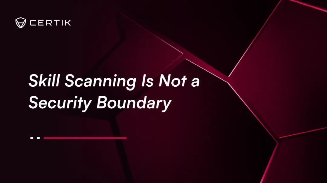 近日,全球最大的 Web3 安全公司 CertiK,发布了针对 Skill 安全的最新研究。文中指出,当前市场对 AI 智能体生态的安全边界存在认知错位:行业普遍将“Skill 扫描”当作核心安全边界,而这套机制在黑客攻击面前几乎形同虚设。
