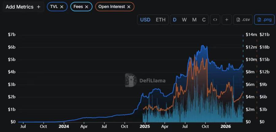 2026 年 1 月,RWA 永续合约交易量单月增长 162%,达到 310 亿美元。Hyperliquid 累计成交量达 406 亿美元,未平仓合约峰值 153 亿美元,占据约 70% 市场份额。