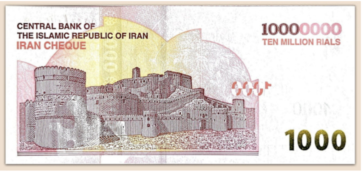 2026 年 3 月 21 日,伊朗央行发行了面值 1000 万里亚尔的新钞(约 5 美元)——成为当地面值最高的法币。